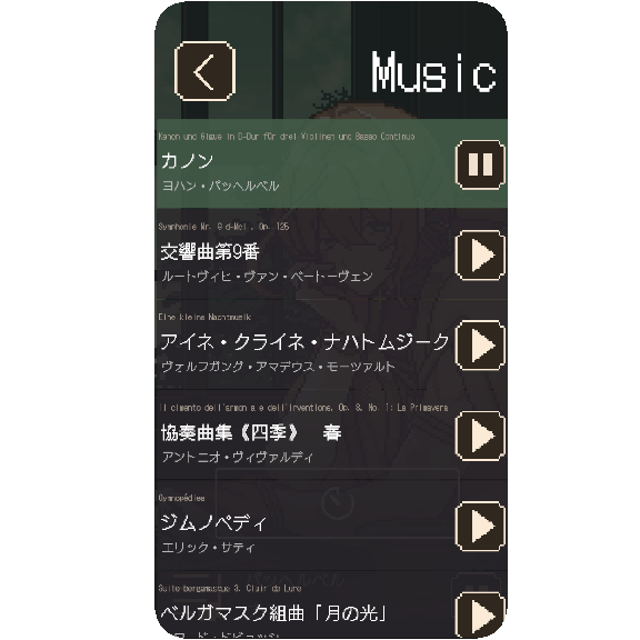 通常時でも、ポモドーロタイマー中でも、クラシック音楽を再生できます。